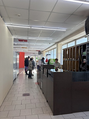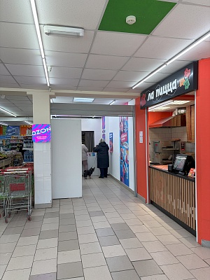 Хорошее соседство, коммуникации имеются, окна (3 шт.), большая парковка, высокий трафик.