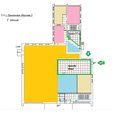 Сдается помещение 95 кв.м, расположенное на цокольном этаже здания. На первом этаже розничный магазин Мария-Ра. Спуск в помещение аренды сразу справа от центрального входа.